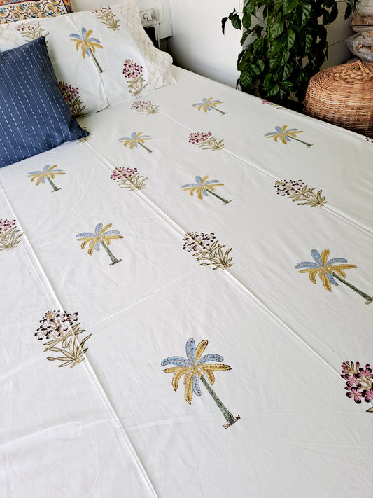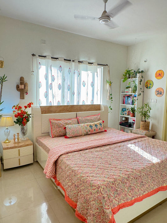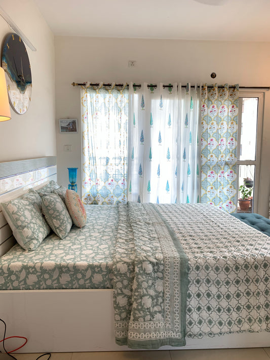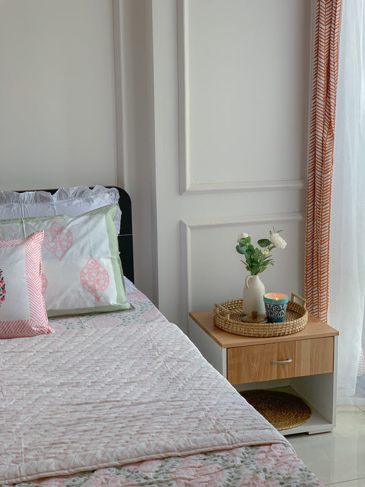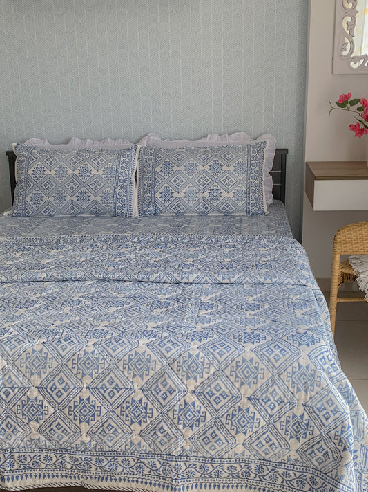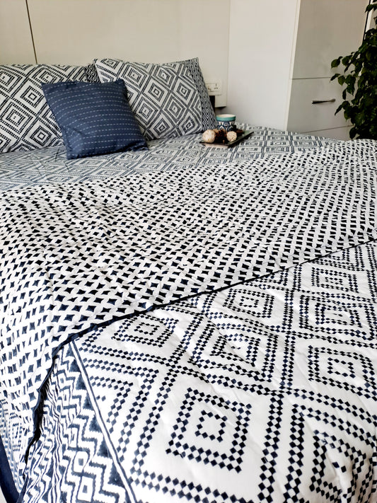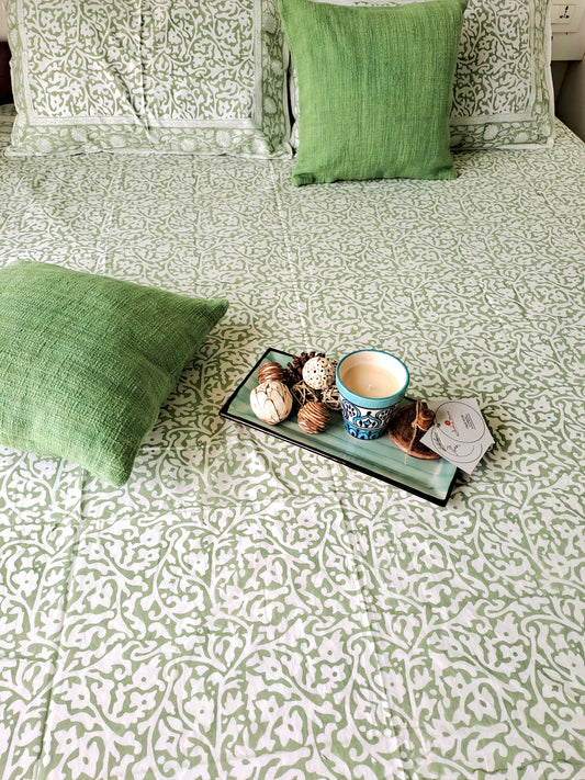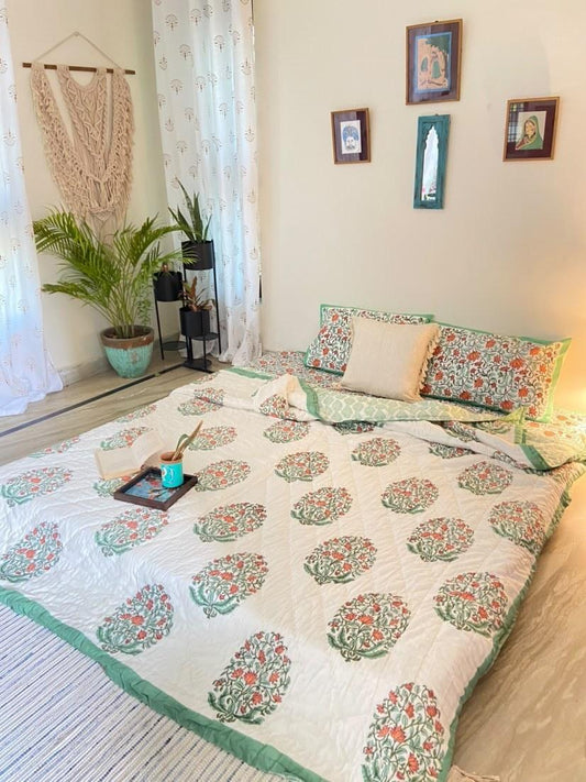 HAND BLOCK PRINT DOUBLE BEDSHEET AND QUILT BEDDING SET