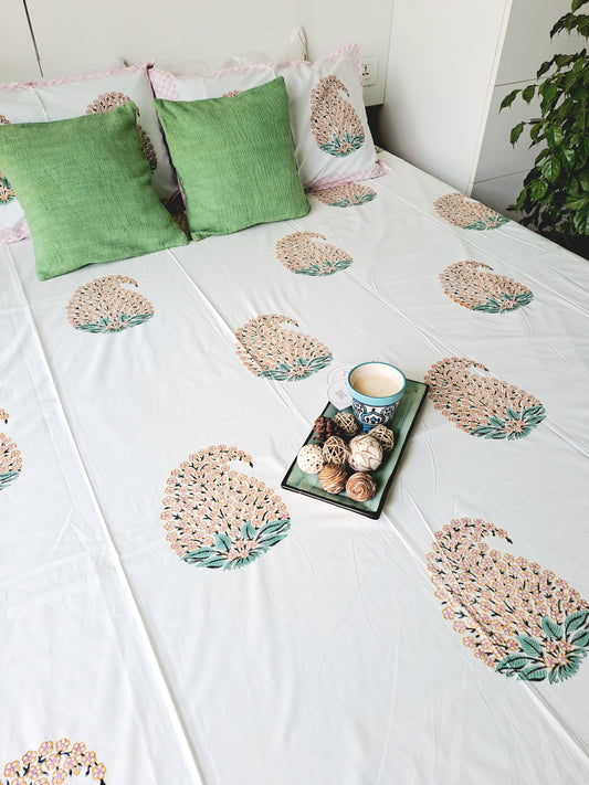 HAND BLOCK PRINT BEDSHEET AND MULMUL DOHAR BEDDING SET