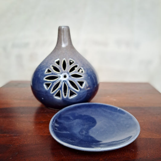 BLUE POTTERY CERAMIC PALM / HAND AGARBATTI STAND