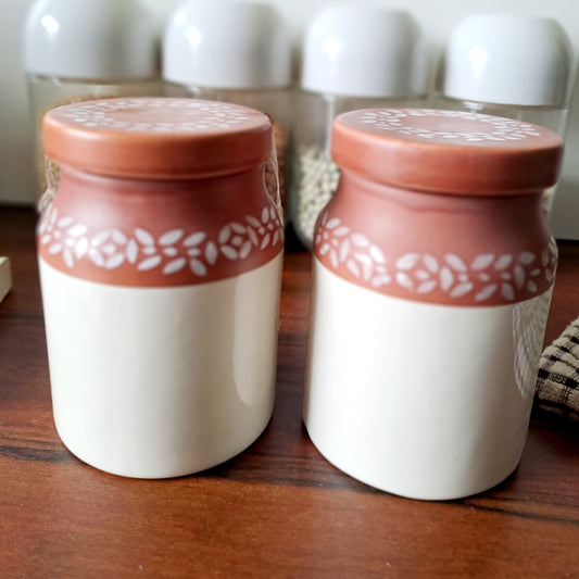 CERAMIC JAR WITH CERAMIC LID (SMALL) SET OF 2