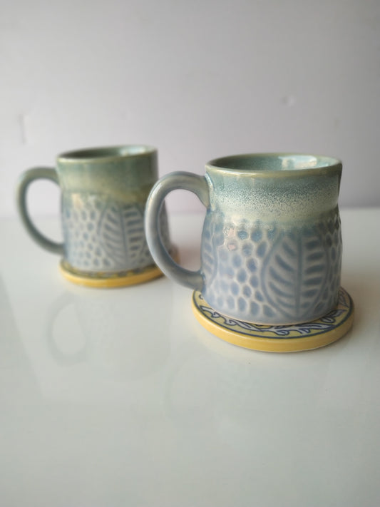 LEAFY BLUE COLOR CERAMIC MUG/CUP(SET OF 2)
