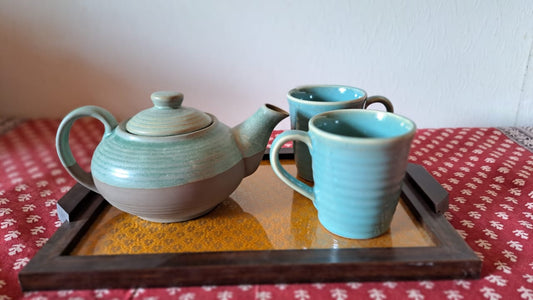 Sold outCeramic Tea pot with Two Cups
