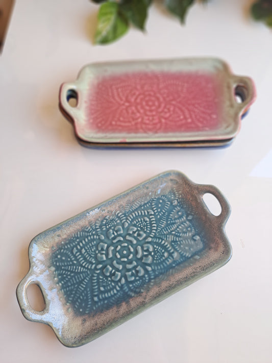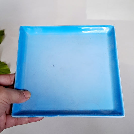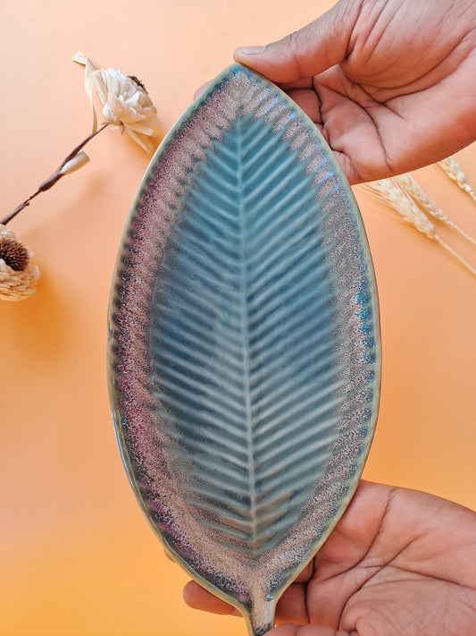 CERAMIC FISH ENGRAVED LIGHT BLUE PLATTER