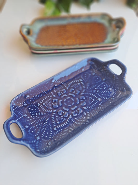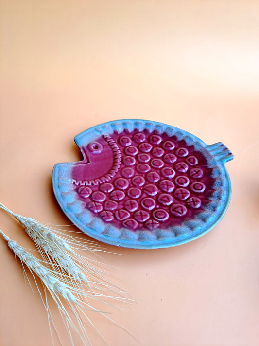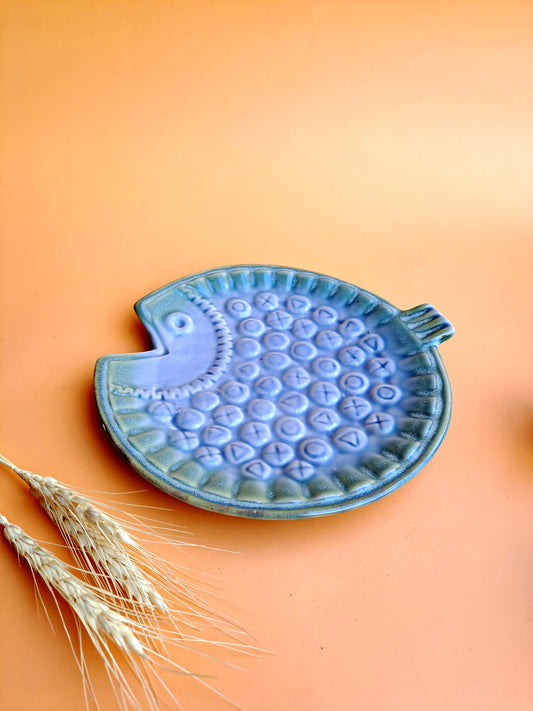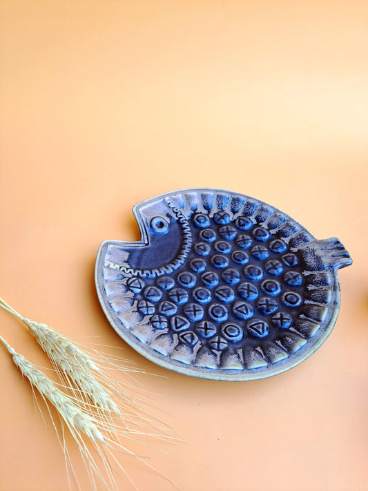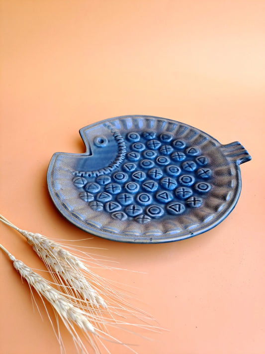 CERAMIC FISH ENGRAVED BLUE PLATTER