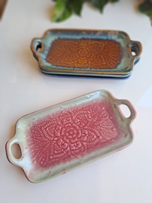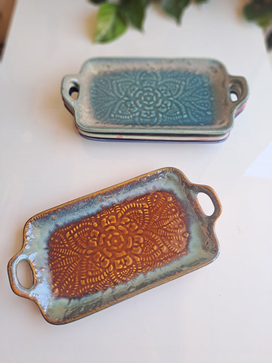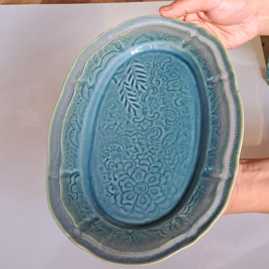 CERAMIC FISH ENGRAVED GREEN PLATTER