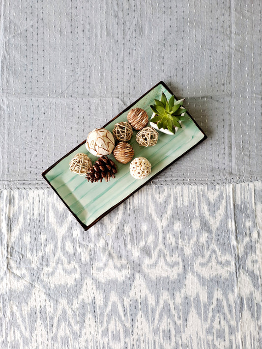 CERAMIC FISH ENGRAVED GREEN PLATTER